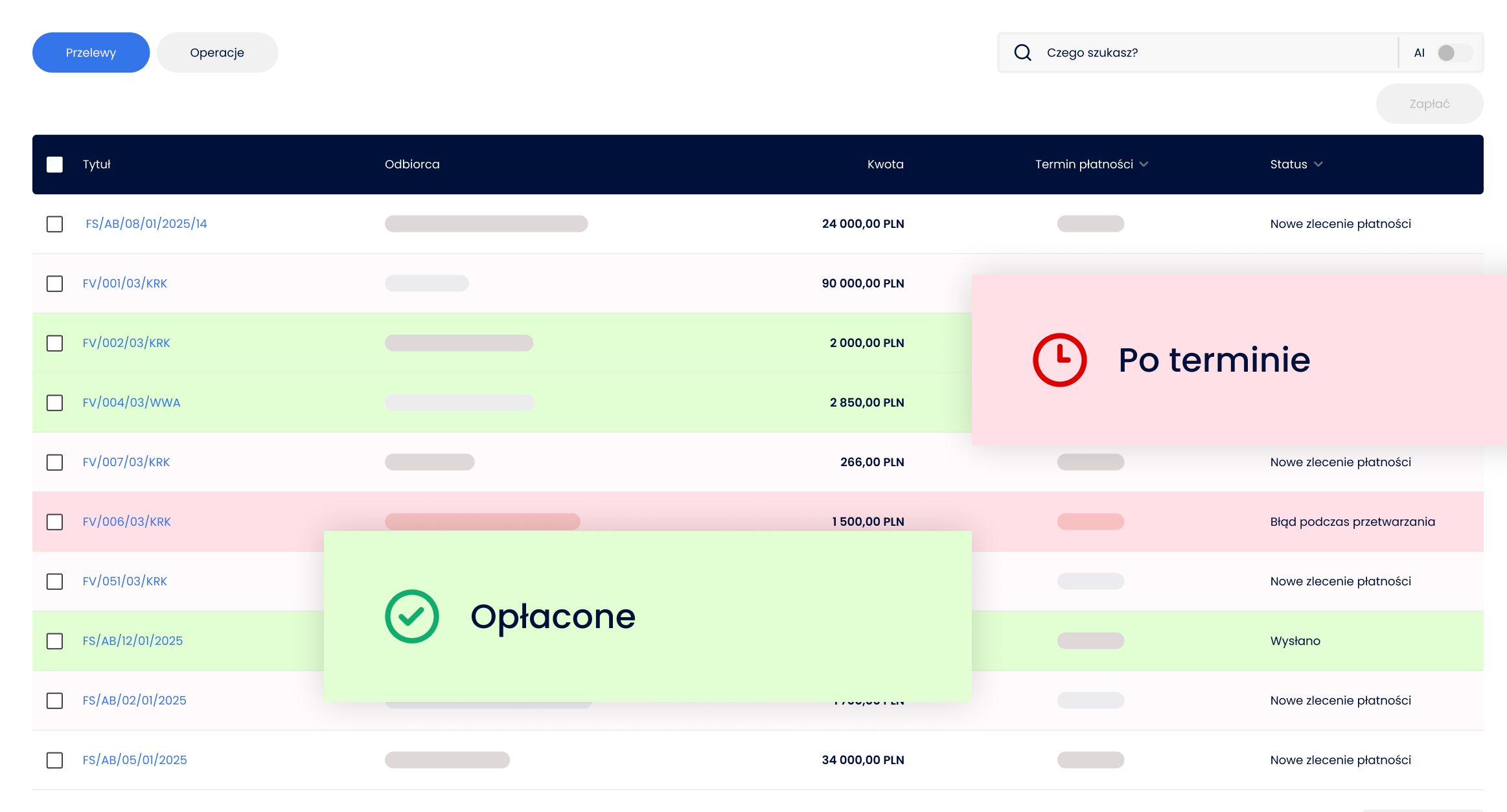 Nasza funkcja monitorowania statusów płatności w czasie rzeczywistym dostarcza Ci natychmiastowych informacji o tym, czy Twoje faktury zostały opłacone, są w trakcie realizacji, czy też oczekują na płatność. Koniec z domysłami i sprawdzaniem wyciągów bankowych! Dzięki aktualnym statusom, możesz szybko reagować na opóźnienia, planować przepływy finansowe i utrzymywać zdrową płynność finansową Twojej firmy. Oszczędzaj czas na ręcznym sprawdzaniu i zyskaj pewność, że Twoje finanse są pod stałą kontrolą.